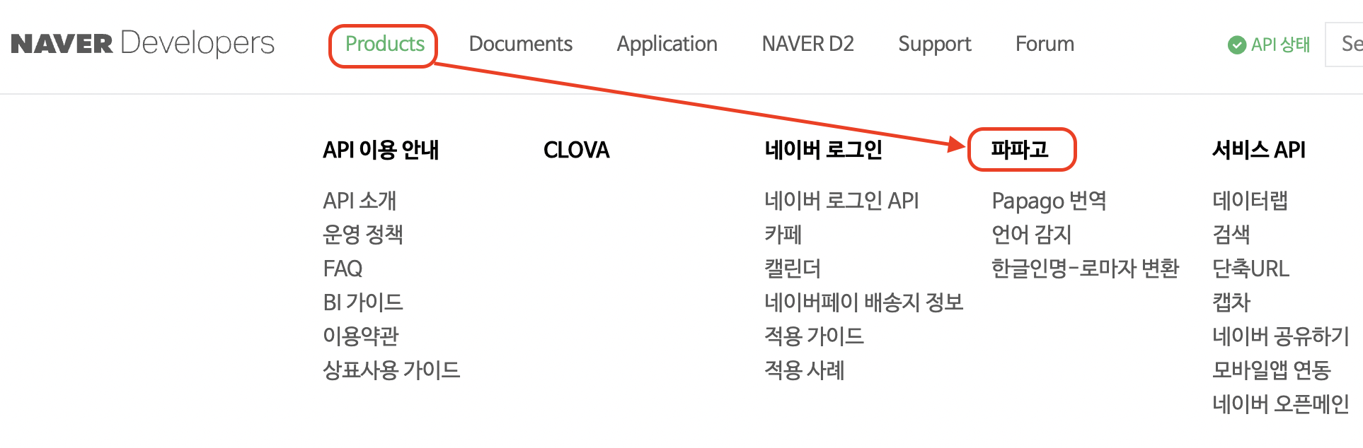 - 네이버 개발자 센터 상단에있는 Product에서 파파고 클릭