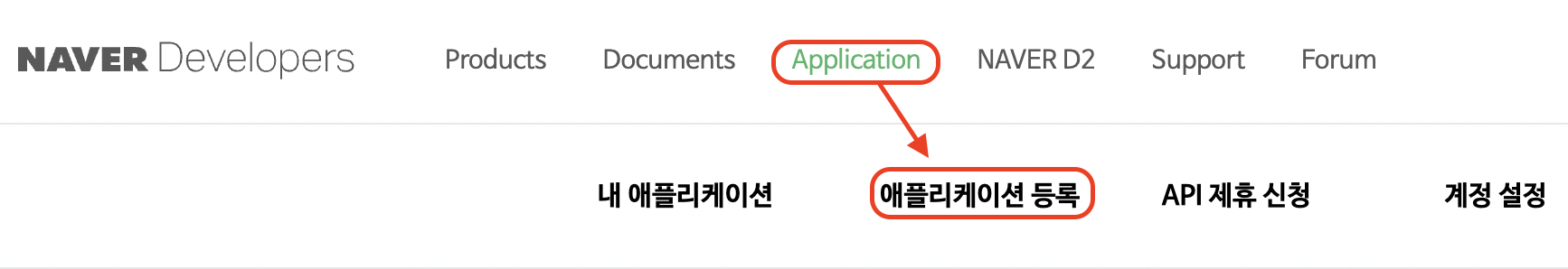- 네이버 개발자센터를 검색 후 들어간다. (네이버 개발자센터 텍스트 누르면 자동으로 이동)